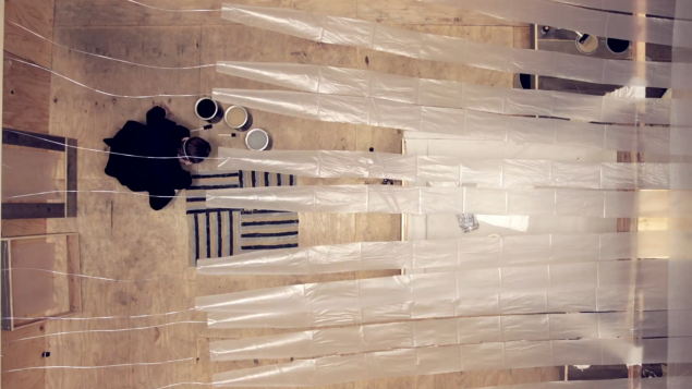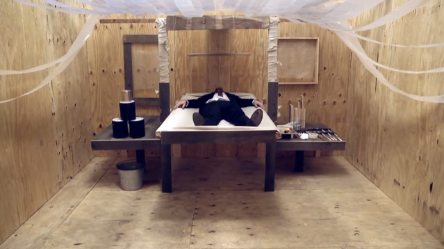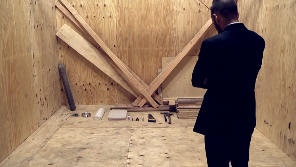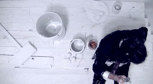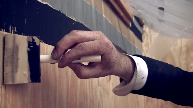Native Son, a snazzy and technically savvy brand of men’s suit released an art film by Isaac Rentz (an American Japanese born music/art videographer) during its launch of fall/winter 2011 collection this past New York Fashion week.  The short film, The Track, The Train, The Traveler showcases three men: the carpenter, the artist, and the filmmaker–all wearing sharp Native Son suits (from the f/w 11 season) while being filmed for a total of 36 hours in a sealed crude room, encompassing only about 10-16 feet of space, and left with just some raw materials and some paint to entertain with.