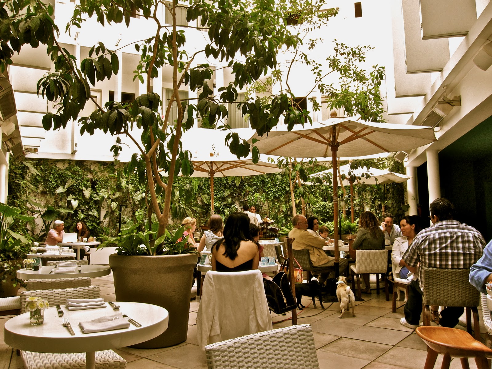 It was about 1:30 pm on a Sunday afternoon, and the interior garden was full of high-end clientele–complete with their dogs hanging out next to their respective tables (at least for the most part, which we highly suggest being mindful of when they come close to your leg…).  As in many up-and-coming cities, (and yes Mexico City being one of them), there is a hotel-exclusive-party-movement.  Because most hotels are decorated with the utmost decadence and style, they make for a very chic fête scenario.