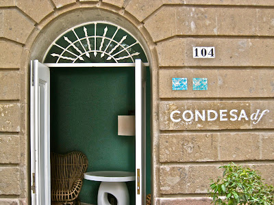 Hence, we were serendipitously surprised to realize that Mexico City, despite the floating unnerving rampant rumors (to the point where a once-visitor friend of ours, highly insisted that frolicking the streets without a guide–anywhere in Mexico–would prove to be dangerous), is actually quite charming and impressive–it is most certainly an underrated picturesque city.  La Condesa district, where CONDESA df hotel/restaurant/lounge is nestled, parallels a Mexican version of the West Village in New York.  The avenues are wide, tree-lined with vibrant colored houses–showcasing some remnants of the Colonial Spanish stamp–still quite apparent and ubiquitously echoed in this Central American town.  (See below + video!).