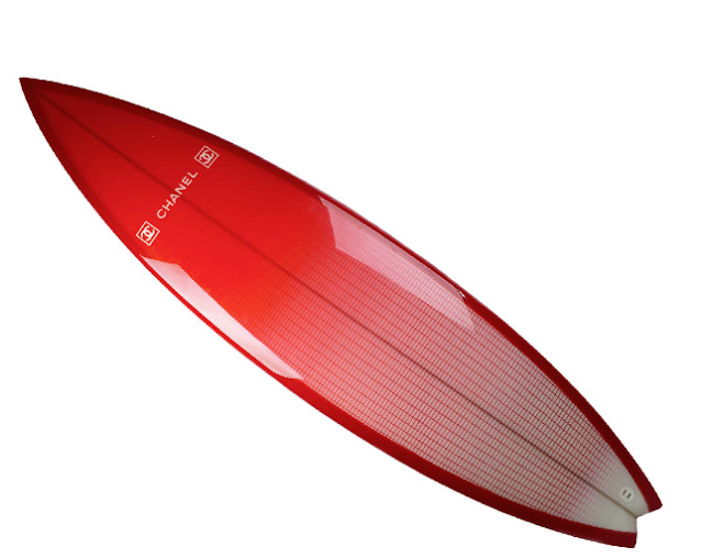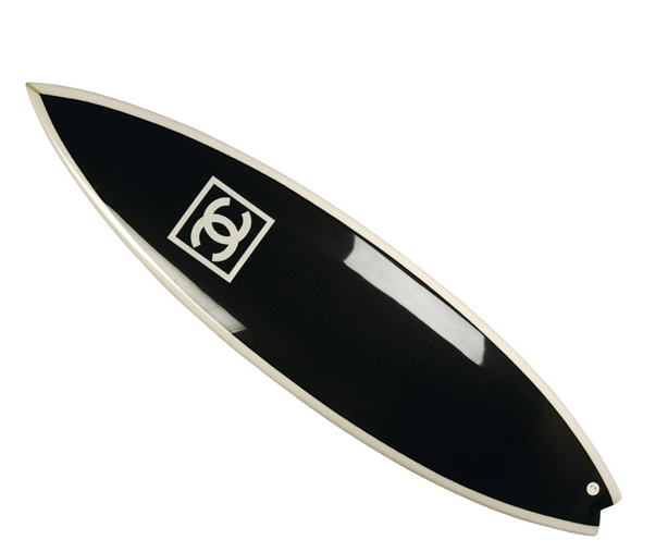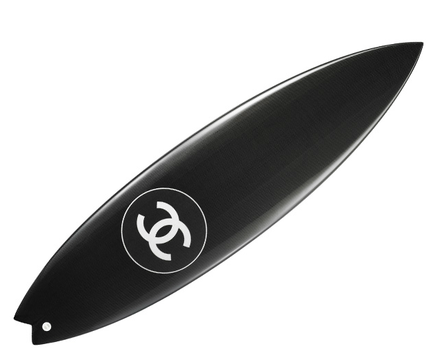 The CC surfboards are priced at about $3900.  They’re made out of monochrome carbon fiber and they come with a Chanel signature cover.
