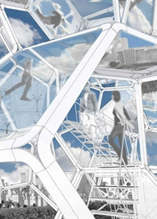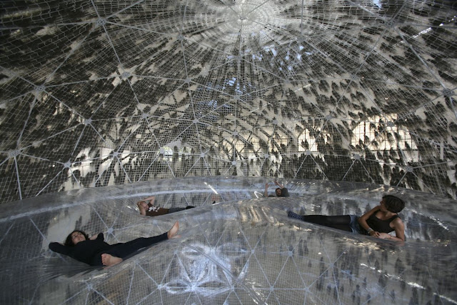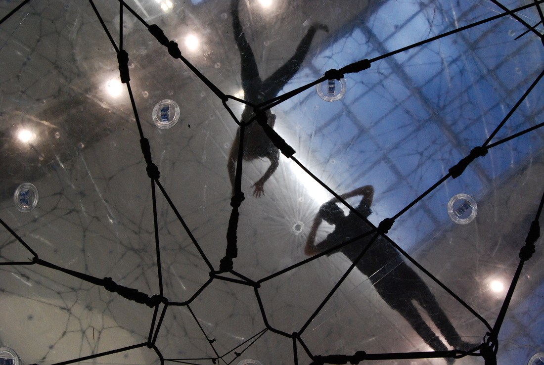 The piece is a three dimensional interconnected modules—made of translucent and reflective material—it will be climbable and fully interactive.  “I like the idea when somebody moves, the other person also moves, and there’s something like a coordination between them,”said Saraceno of his concept at his solo exhibition in Berlin at the Hamburger Bahnhof – Museum fur Gegenwart last September.