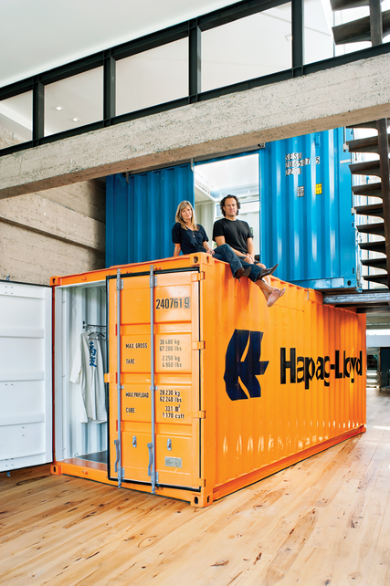 San Franciscan couple, Claudia Span and Jeff Wardell have gone not just inside the box, but indeed on top and all around the the box—transforming a 3,200 square foot former factory into a smartly designed home—highly embellished with large containers.  The space has a railroad semblance; hence, their idea was to accentuate the shape in a fun and creative way by employing the large scale containers to serve as additional rooms.