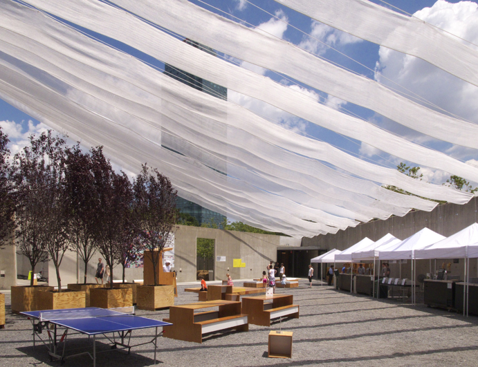 All three architects coming from Harvard’s Graduate School of Design: Georgeen Theodore, Tobias Armborst, and Daniel D’Oca took the approach of looking into what LIC could actually use post-PS1’s-summer-installation.  Their goal: to donate everything to the local residents once PS1 retires for the summer season .