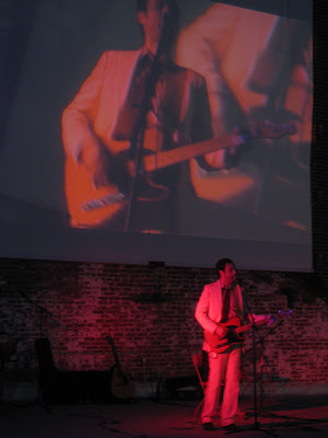 The night began with music by Hartwell Littlejohn, (a South Carolina native who played an acoustic set) as the full moon rose over the surrounding buildings (pictured left). Dressed in a white suit with tuxedo pants sporting an arrow down the side, his relaxed soulful sound set the tone for the evening.  The theme of the evening, Creation, Construction, Convento comprised of “animations, documentaries and art pieces, [which] illuminate a paradoxical paradise where [human], machine, and nature find harmony,” according to Mark Elijah Rosenberg (Rooftop’s founder and artistic director).