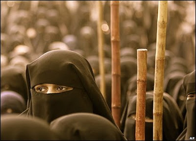 French President Nicolas Sarcozy says, (aucuns burqas permis ici): “It (meaning burqas and niqabs) will not be welcome on the territory of the French republic!It is not a sign of religion, it is a sign of subserviance!” The French parliament is to review whether or not the wearing of the burqa will compromise women’s lib and the secular conventions in France. (Students and government workers are also not allowed to wear any religious emblems by law to school or work respectively, which is a partial French translation for separation of church and state. What do you think?