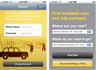 Weeels — if you’re a serial cab rider, well get ready for this:  It’s an app for cab sharing just for New Yorkers.  Apparently there are about half a million cab riders a day, and about 150,000 New Yorkers would in fact share a cab ride, hence divi-up the fare with a complete stranger. Go HERE to learn more and sign up.