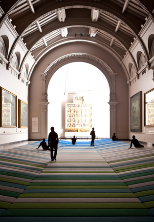Thanks to French designers Ronan and Erwan Bouroullec, visitors to London’s Victoria & Albert Museum were able to view its prestigious Raphael gallery in a very unusual way.  As part of London Design Week back in September, the pair created an artistic recline of sorts — giving museum goers the chance to sit back, relax and fully take in the magnificence of the old school — while wholly partaking in the new. As shown in the video (below) in a wonderful time lapse piece created by Lonelyleap Films, Ronan and Erwan’s Textile Field created a unique public haven for art lovers.