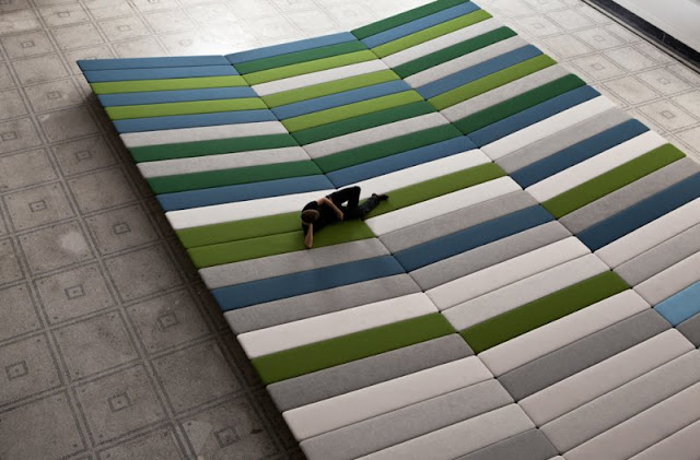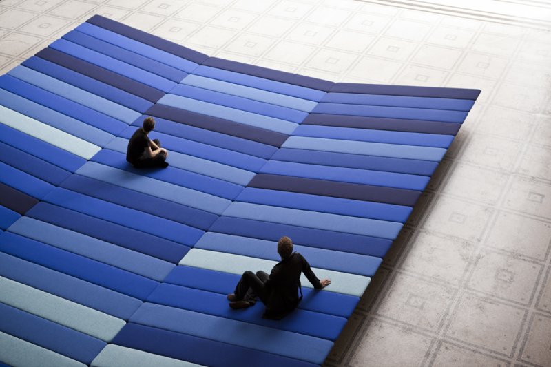 Textile Field took up over 240 square meters of the gallery floor and has created a space that closes the formal distance between the viewer and the artwork. ‘We have decided to provide a kind of furniture element that helps people to relax their bodies and so relax their minds,” said Erwan Bouroullec, “And then, maybe, the meaning will come.”