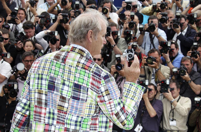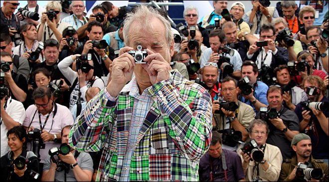 Murray—one of Wes Anderson’s film muses—made quite a splash at the French Film Festival: with his humor in tact, showing up in a very colorful suit, armed with a Minox digital, the actor passed by his cast-mates to make a point of turning the camera back at the howling paparazzi with his miniature camera in hand.  Have a watch at some of the images from Cannes (featured below), as well as the full press conference for Moonrise Kingdom (featured right).